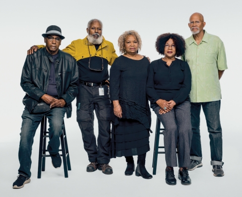 In Los Angeles, from left: Ulysses Jenkins, Charles Dickson, Barbara Mccullough, Senga Nengudi and the Brockman Gallery co-founder Dale Brockman Davis. Photographed at Smashbox Studios on Oct. 30, 2019. (PC: Wayne Lawrence/NY Times Style Magazine))