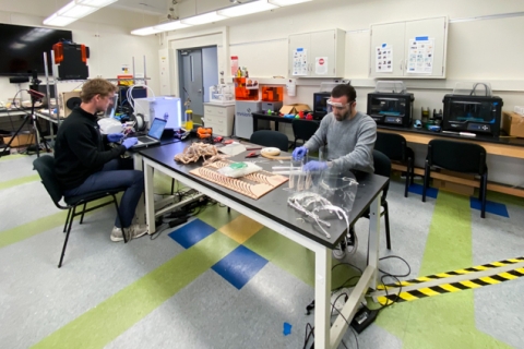 Hospitals, universities, and other centers of research are looking into ways to produce face shields at a massive scale. A team at MIT, for example, has developed a die-cutting process that can produce thousands of face shields an hour on a single machine. The Massachusetts General Brigham Center for COVID Innovation is investigating die cutting and 3D printing, according to co-director Gary Tearney. Jesse Colin Jackson, an assistant professor at University of California Irvine who is making face shields for UCI Health, is also using laser cutters.